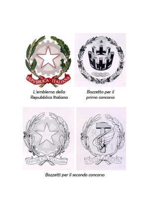 A seguito della nascita della Repubblica d’Italia fu bandito un concorso per la creazione di un simbolo che la potesse rappresentare, fu così che nell’ottobre 1946 si tenne il primo concorso che prevedeva la presentazione di bozzetti in bianco e nero che contenessero la stella d’Italia e l’esclusione di simboli di partito. Dei 341 candidati, vennero scelti cinque vincitori che vennero invitati a preparare nuovi bozzetti, questa volta con un tema ben preciso: “Una cinta turrita che abbia forma di corona, circondata da una ghirlanda di fronde della flora italiana. In basso, la rappresentazione del mare, in alto, la stella d'Italia d'oro; infine, le parole unità e libertà”.